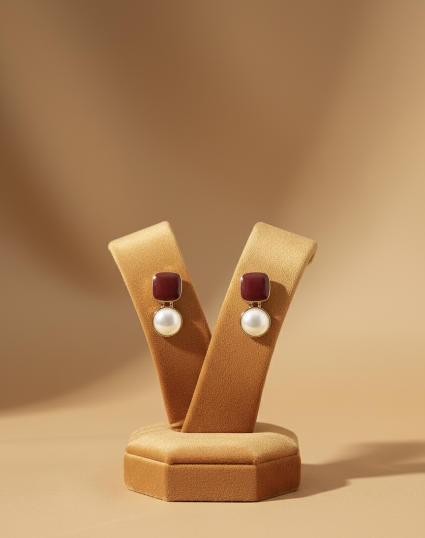 A radiant mix of ruby tones and soft pearls, these earrings bring a touch of calm confidence to your style — effortless, elegant, and made to brighten your day.