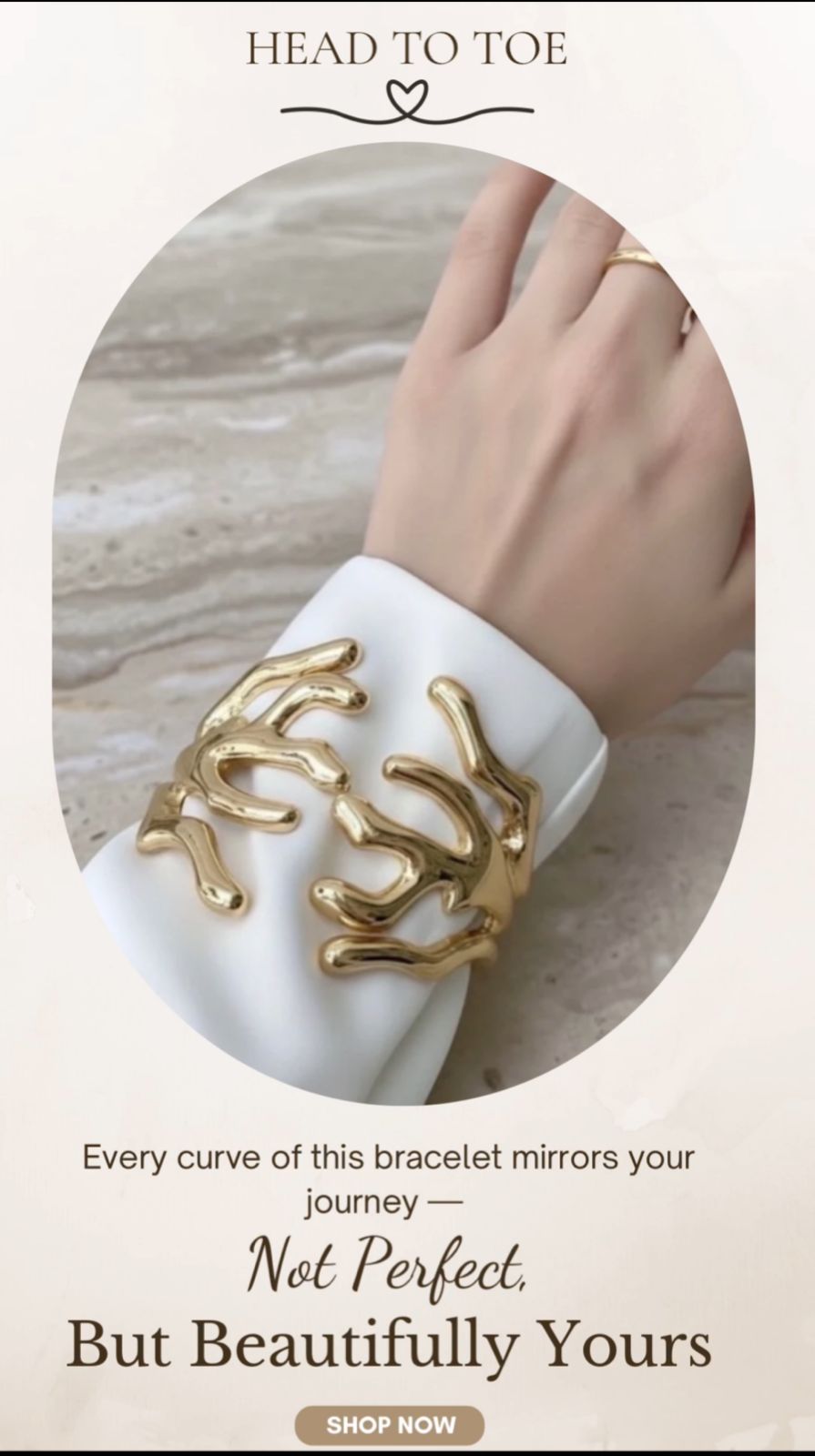 The GLOWN Bracelet radiates confidence and fluid grace with its sculpted, molten-gold form. Inspired by organic waves and sunlit movement, it reflects light with every turn — a symbol of strength, warmth, and self-expression. Lightweight yet bold, this statement cuff elevates any look, from crisp daytime minimalism to golden-hour glamour. Designed to remind you: you don’t wear the glow — you become it.