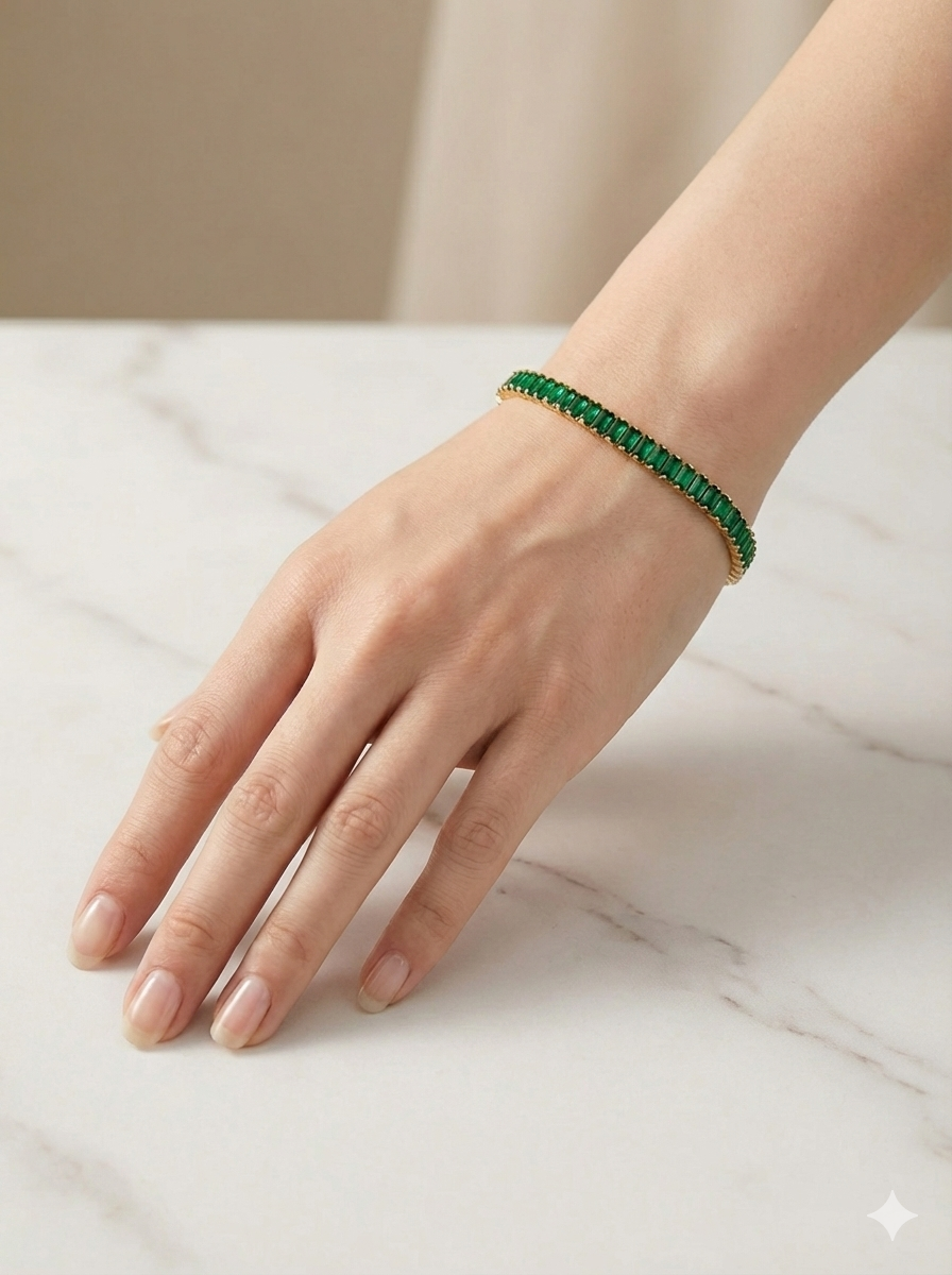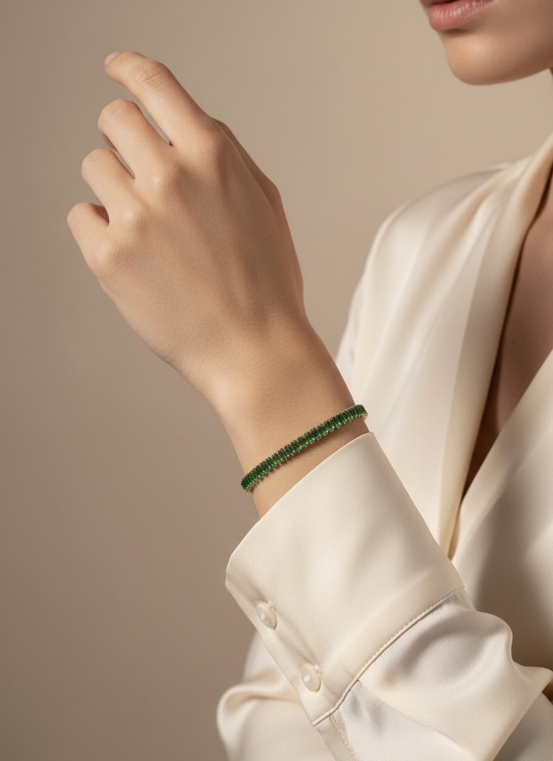 The rich green stones reflect growth, renewal, and calm strength, while the sleek gold setting keeps the look modern and effortless. It’s subtle but intentional — never loud, always present.