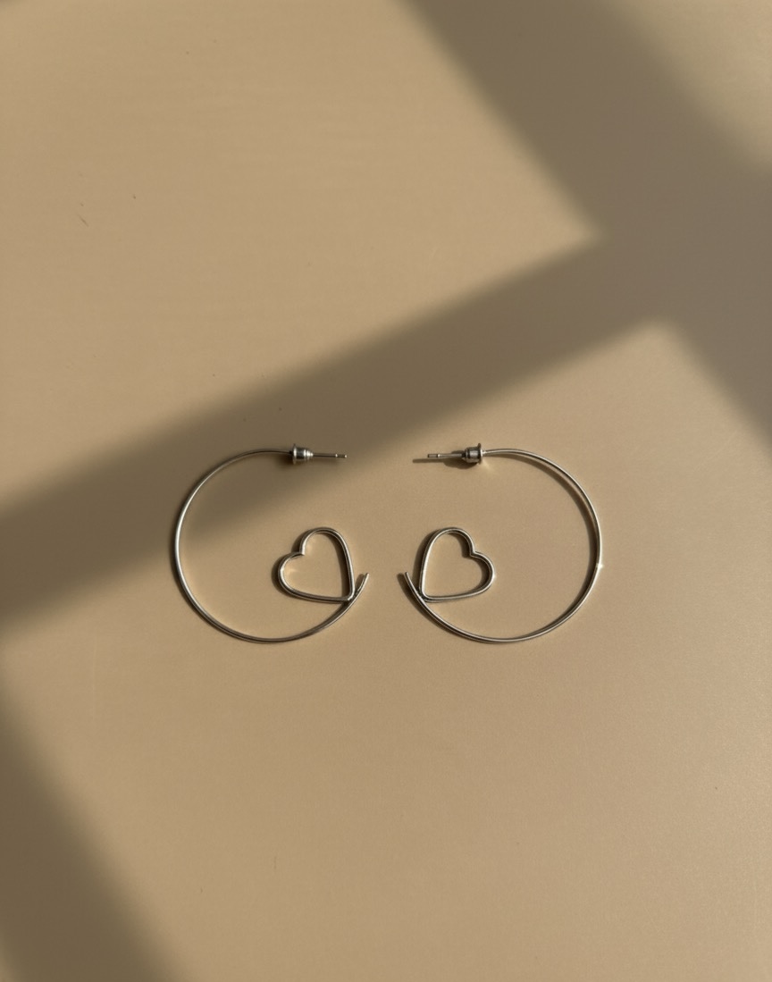 Designed with fluid heart outlines suspended inside delicate hoops, these earrings feel light, intentional, and emotionally calm.