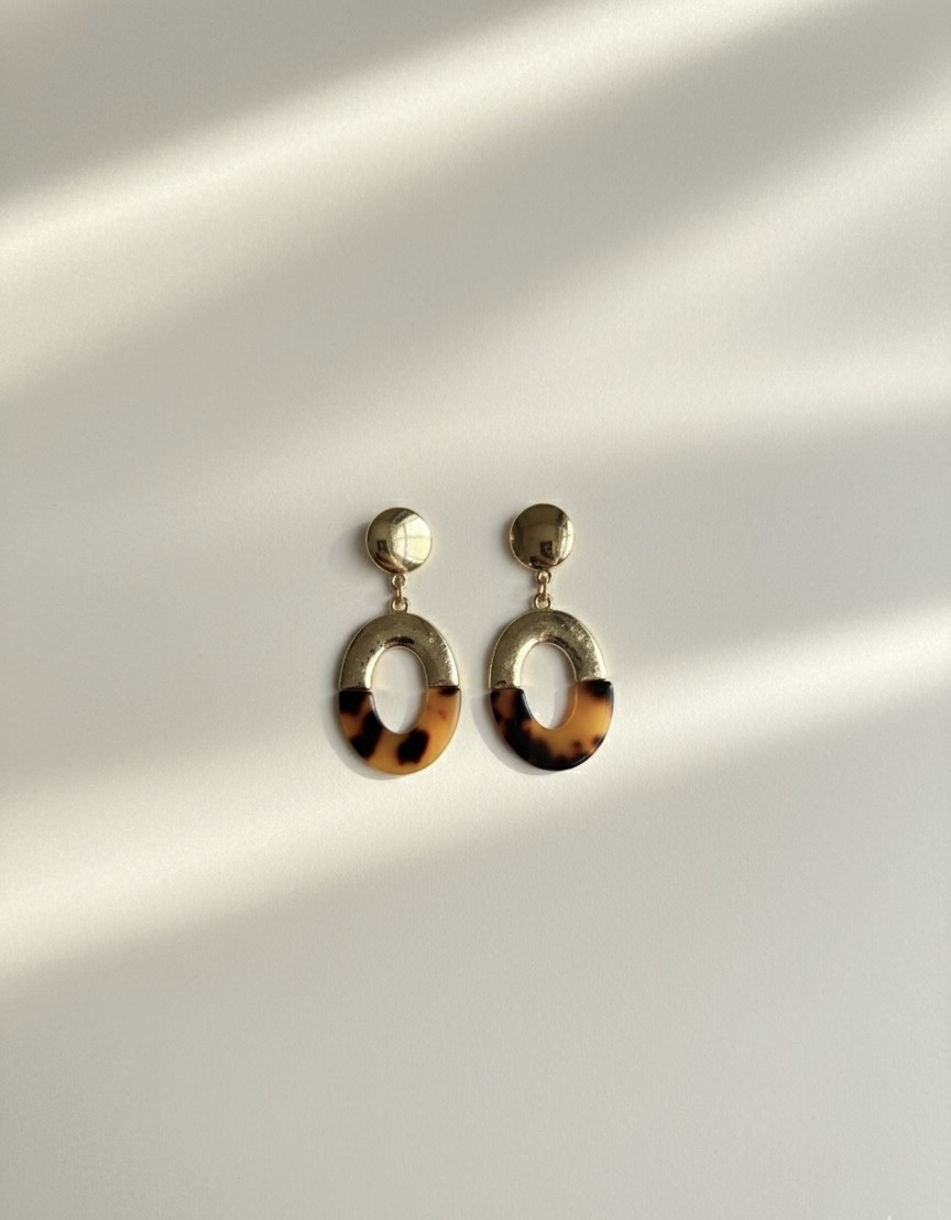 Featuring sculptural oval drops with animal-print detailing, these earrings balance earthy texture with a polished gold finish.